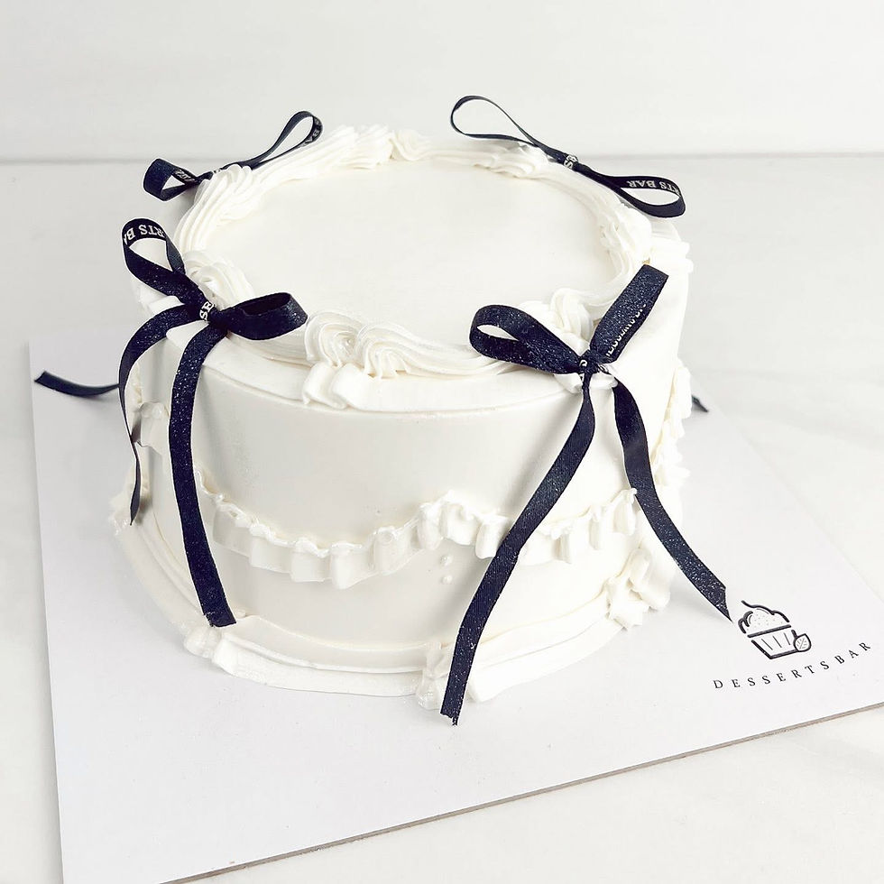 A vintage cake design often features intricate piping details such as floral motifs, ruffles and frills.